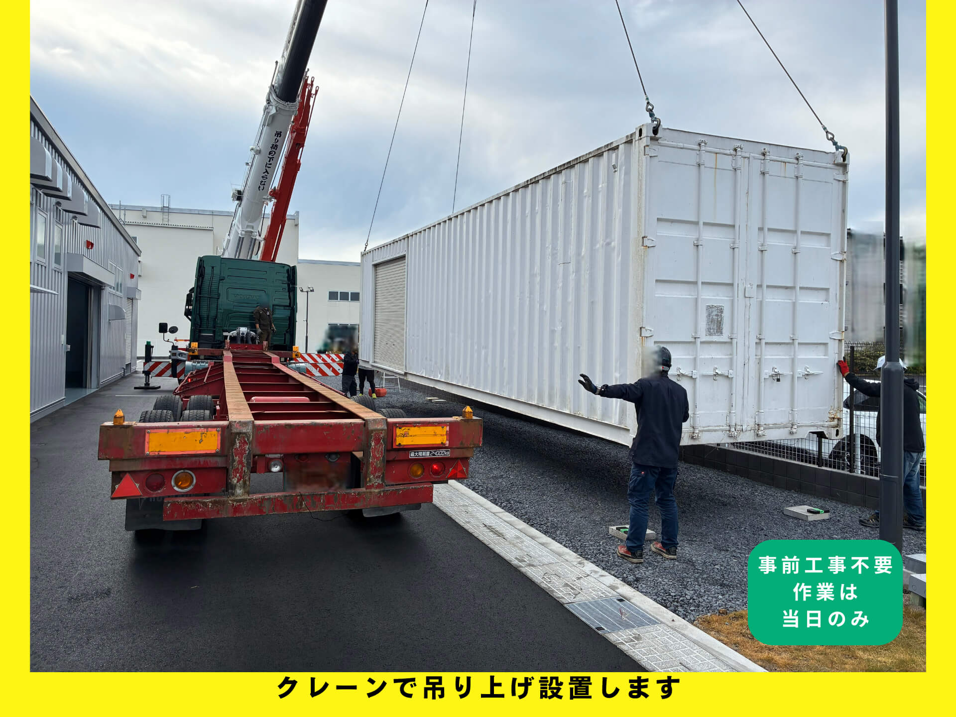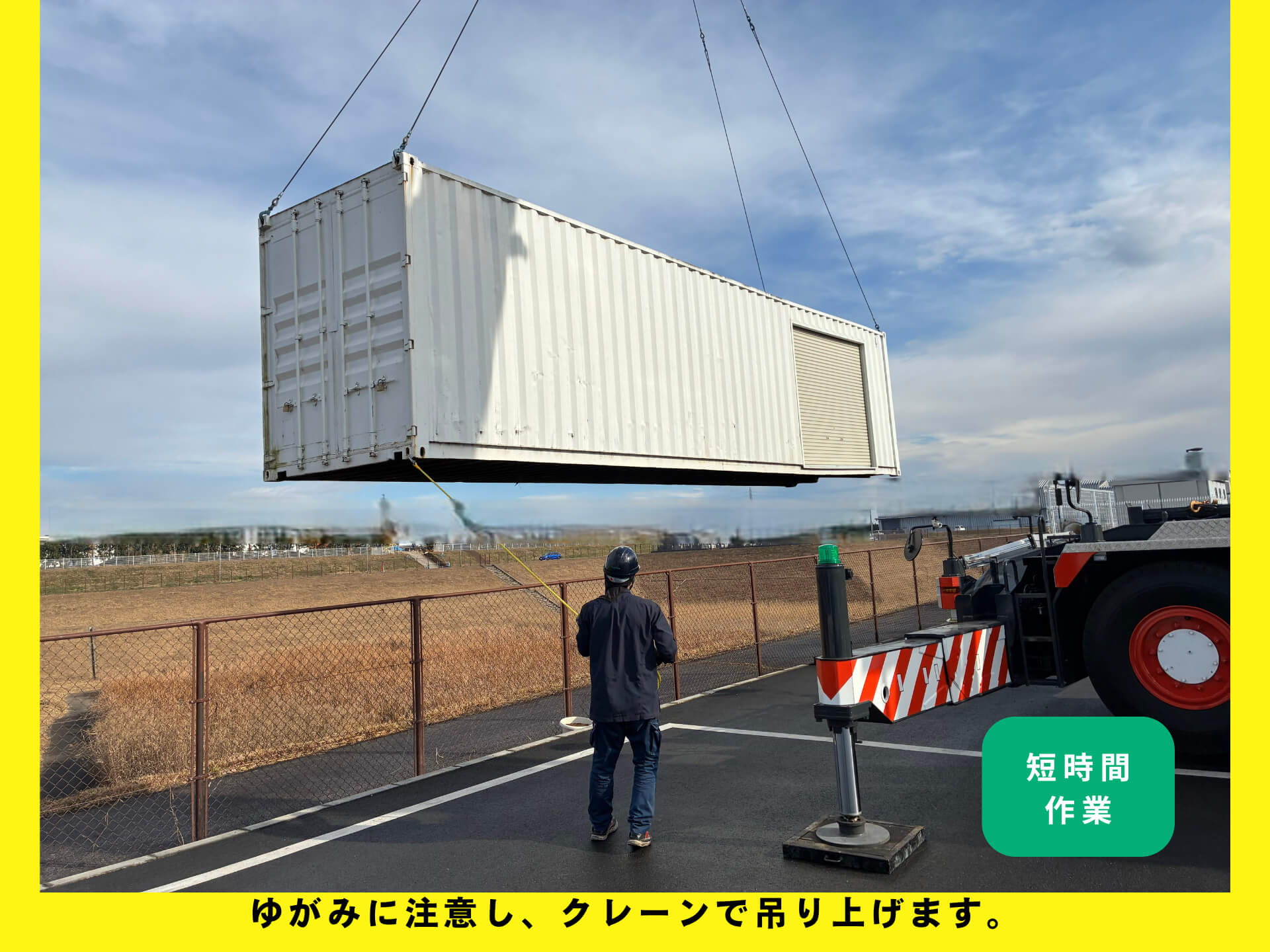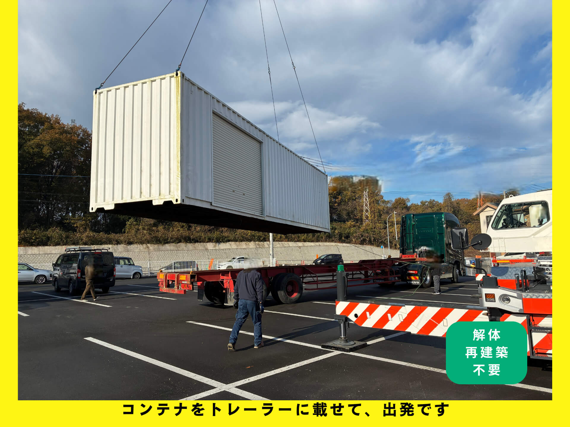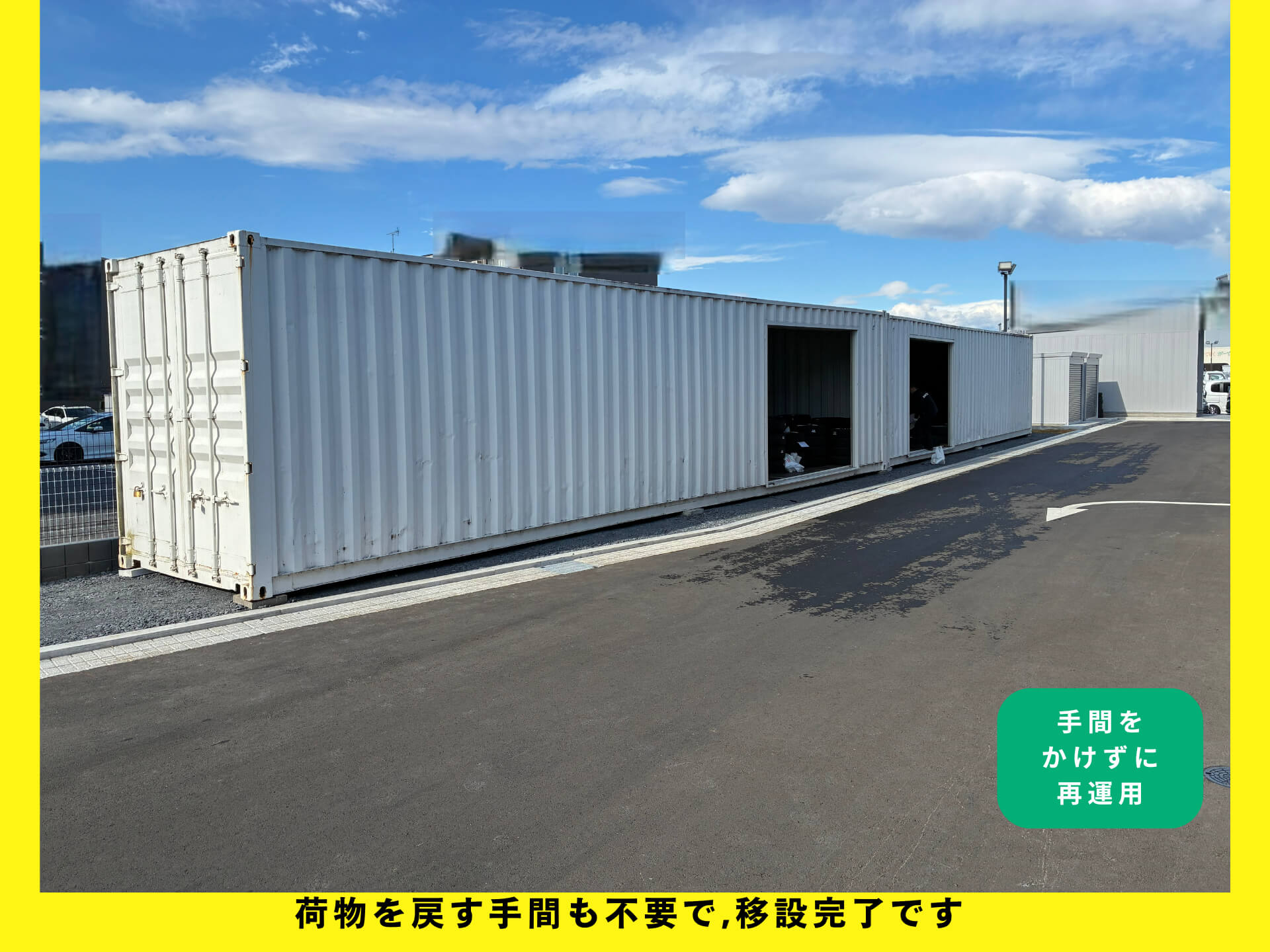 1.倉庫の解体・再建築が不要。コンテナは解体せずそのままクレーンで持ち上げますので、再設置場所での組み立ては不要です。