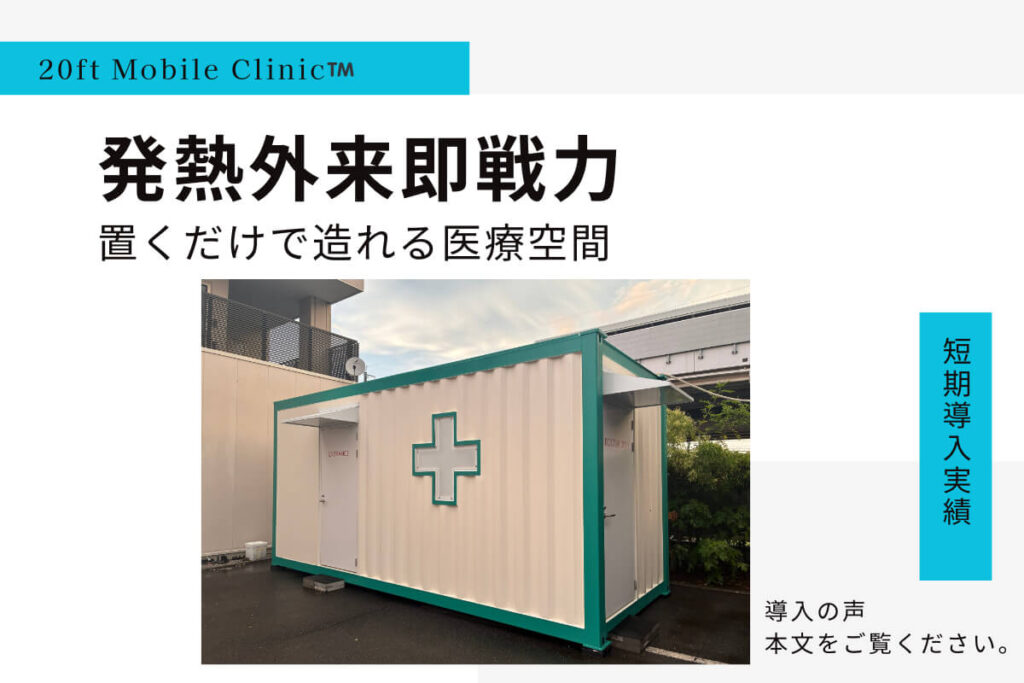 ― 発熱外来の専用空間をスピード導入 ― 埼玉県にある Aクリニック様 にて、発熱外来環境を迅速に整備するため、当社の 20ft モバイルクリニック™ を導入いただきました。 ■導入の背景 Aクリニック様で […]